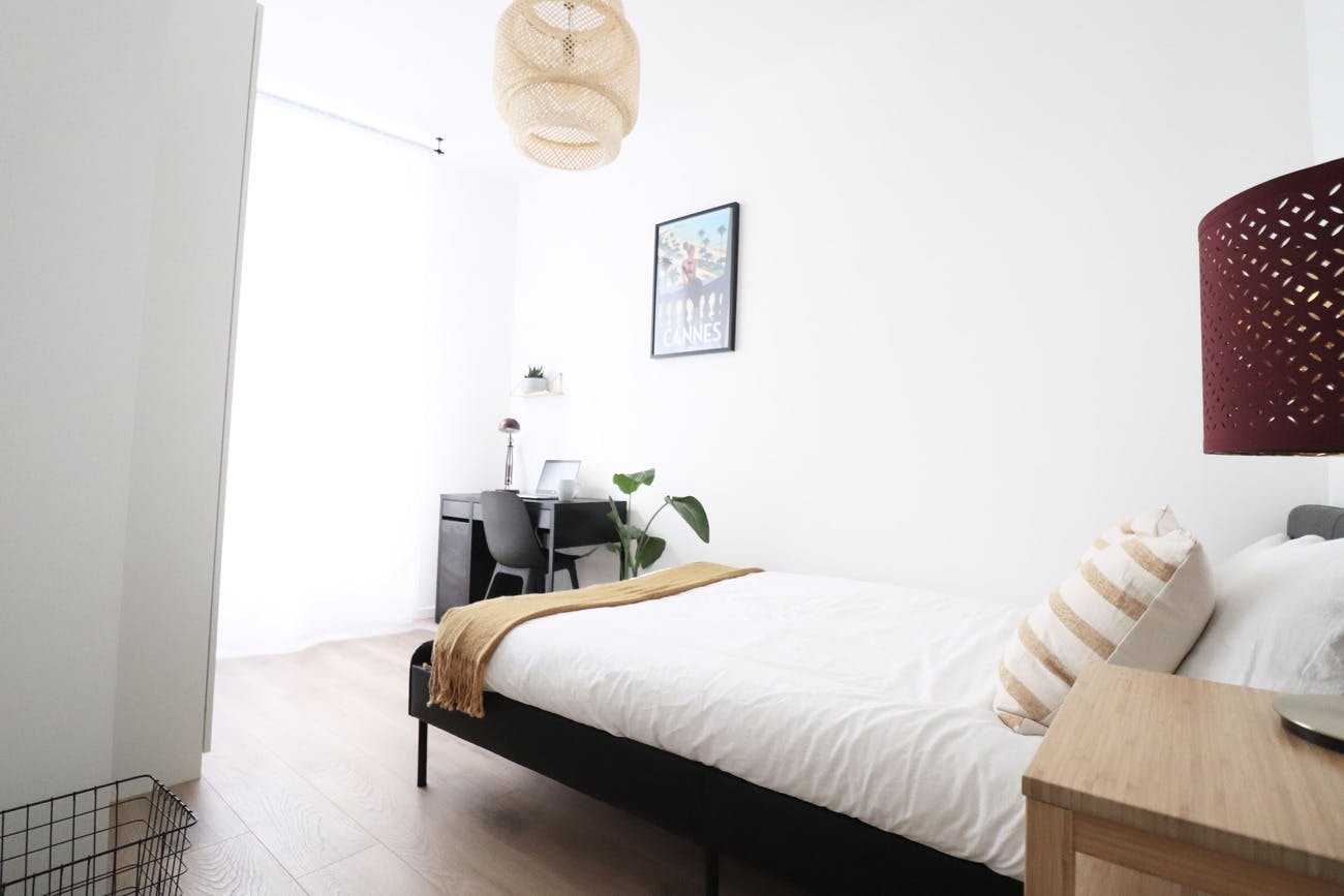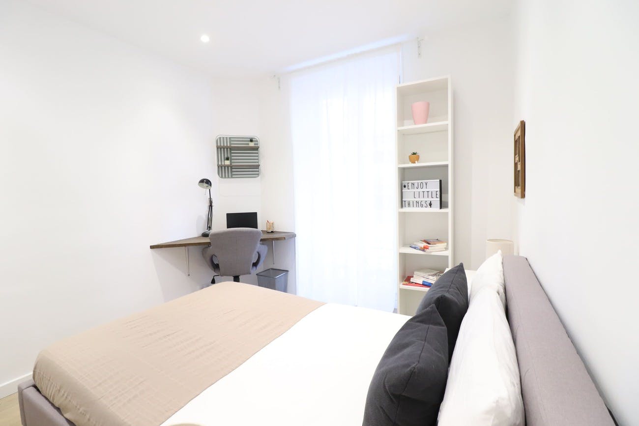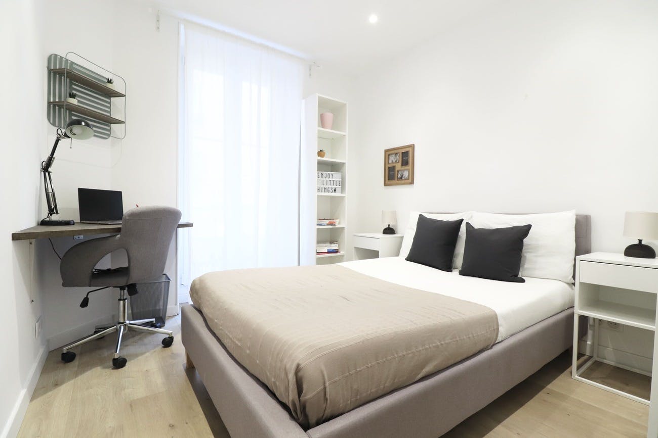 Experience the charm of this delightful apartment at 70 Rue de France in Nice, just a short two-minute stroll from the iconic Promenade des Anglais and the inviting beach—perfect for soaking up the sun by the sea. Inside, the apartment offers a comfortable and thoughtfully designed living area with an open kitchen, five cozy bedrooms, two bathrooms, and a practical storage area. Our interior design experts have carefully curated the space, blending contemporary decor with the timeless elegance of traditional French Riviera architecture. Each bedroom features a double bed, ample storage, a desk with a chair for work or leisure, and shelves for your personal touches, creating a welcoming space to relax and unwind. Conveniently located in the heart of Nice, this apartment provides easy access to groceries and public transport, with a supermarket just across the street for effortless shopping. Whether you're stocking up on essentials or setting off on city adventures, everything you need is close at hand. The rent covers building service charges, bi-monthly professional cleaning of communal areas, internet/cable TV, water, and a provision for electricity, with the final balance adjusted based on actual consumption either annually or at the end of the tenancy. A one-time application fee includes the preparation of the lease, check-in and check-out procedures, inventory documentation, and dedicated assistance throughout your stay. The apartment is APL eligible; for a personalized simulation, please visit the CAF website.
