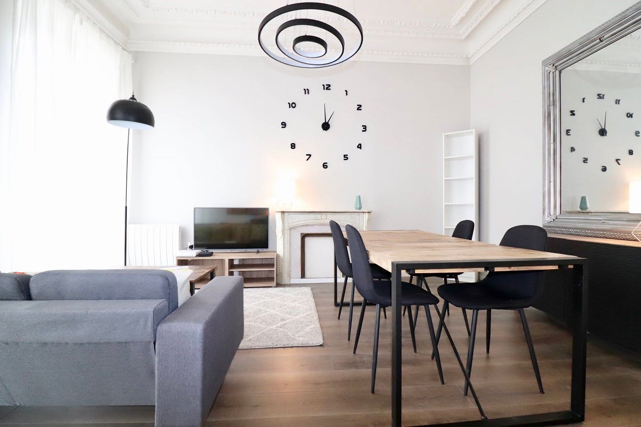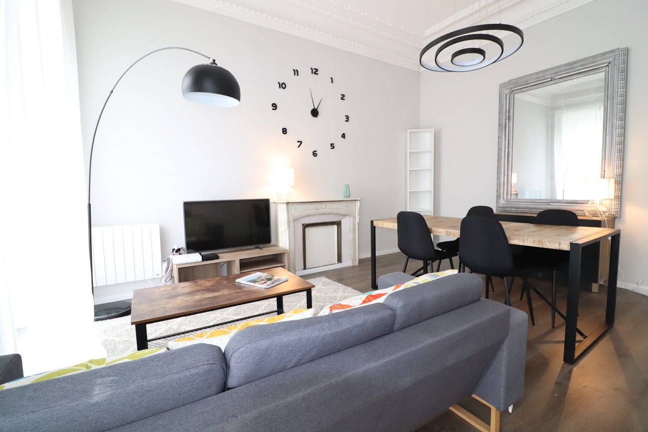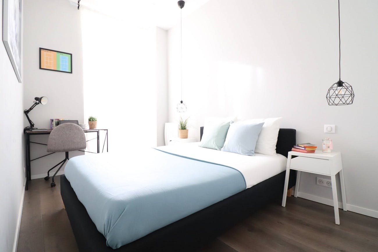 Experience the charm of this delightful apartment at 70 Rue de France in Nice, just a short two-minute stroll from the iconic Promenade des Anglais and the inviting beach—perfect for soaking up the sun by the sea. Inside, the apartment offers a comfortable and thoughtfully designed living area with an open kitchen, five cozy bedrooms, two bathrooms, and a practical storage area. Our interior design experts have carefully curated the space, blending contemporary decor with the timeless elegance of traditional French Riviera architecture. Each bedroom features a double bed, ample storage, a desk with a chair for work or leisure, and shelves for your personal touches, creating a welcoming space to relax and unwind. Conveniently located in the heart of Nice, this apartment provides easy access to groceries and public transport, with a supermarket just across the street for effortless shopping. Whether you're stocking up on essentials or setting off on city adventures, everything you need is close at hand. The rent covers building service charges, bi-monthly professional cleaning of communal areas, internet/cable TV, water, and a provision for electricity, with the final balance adjusted based on actual consumption either annually or at the end of the tenancy. A one-time application fee includes the preparation of the lease, check-in and check-out procedures, inventory documentation, and dedicated assistance throughout your stay. The apartment is APL eligible; for a personalized simulation, please visit the CAF website.