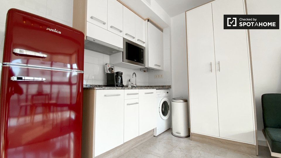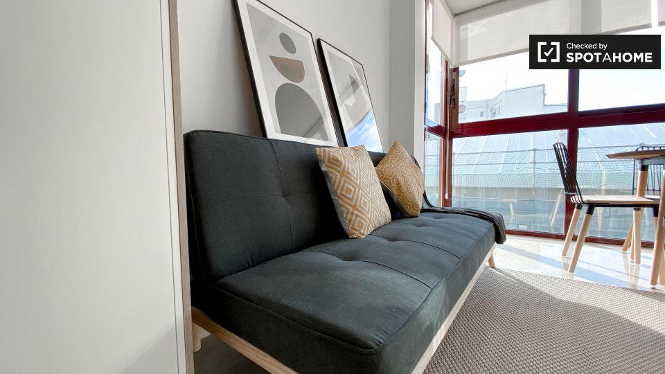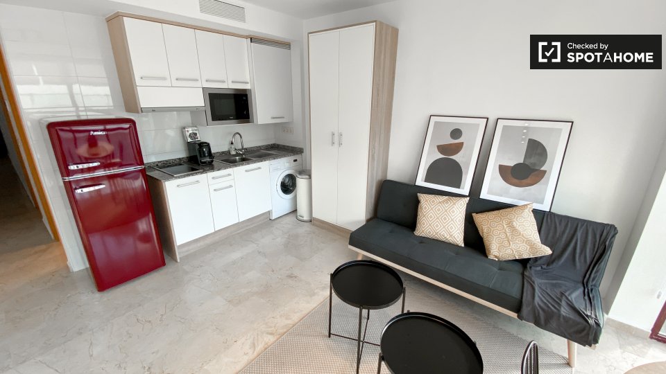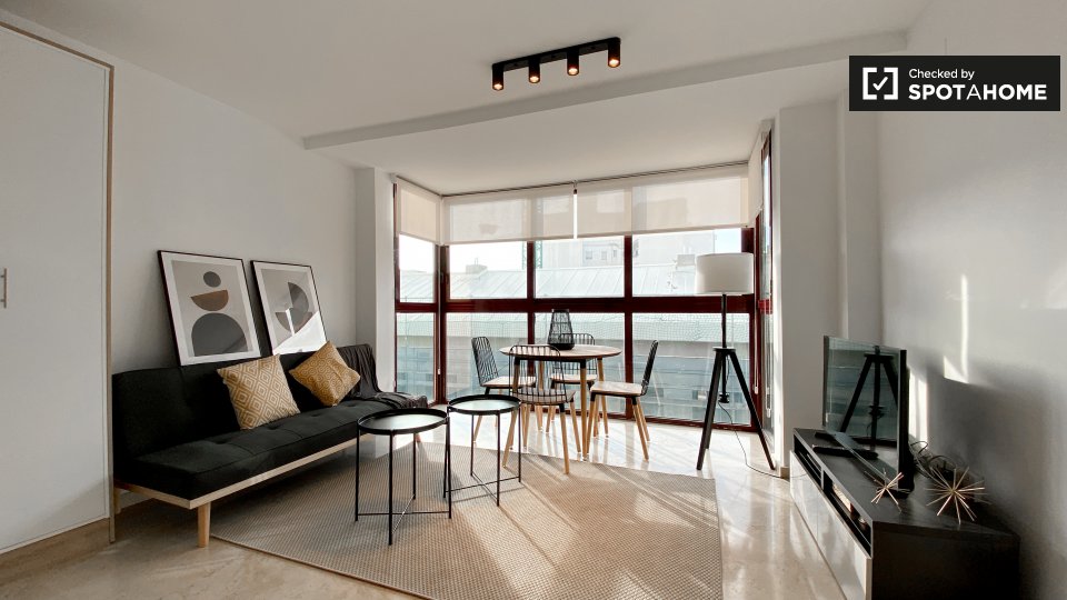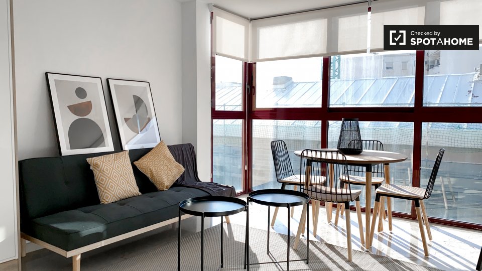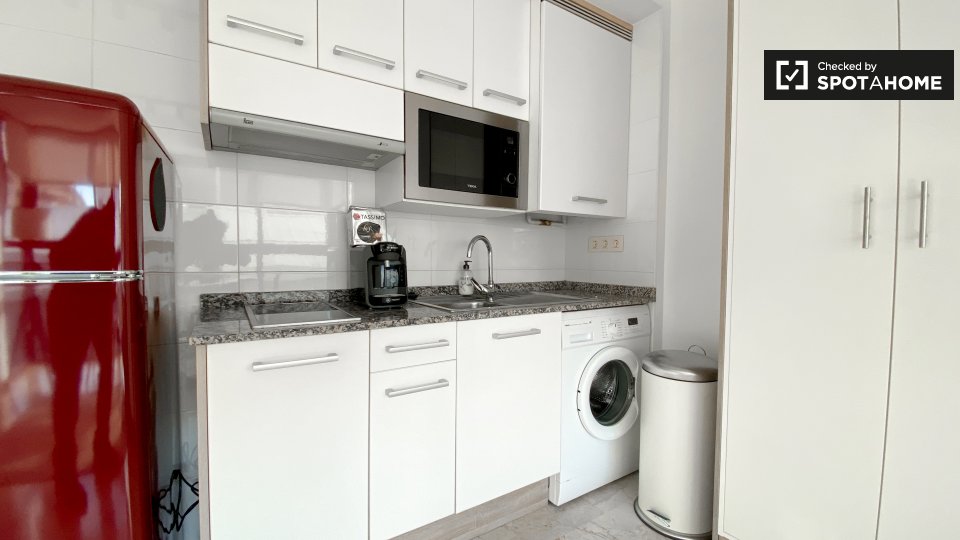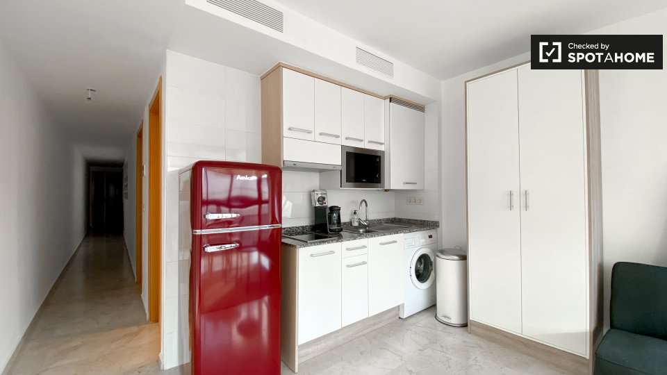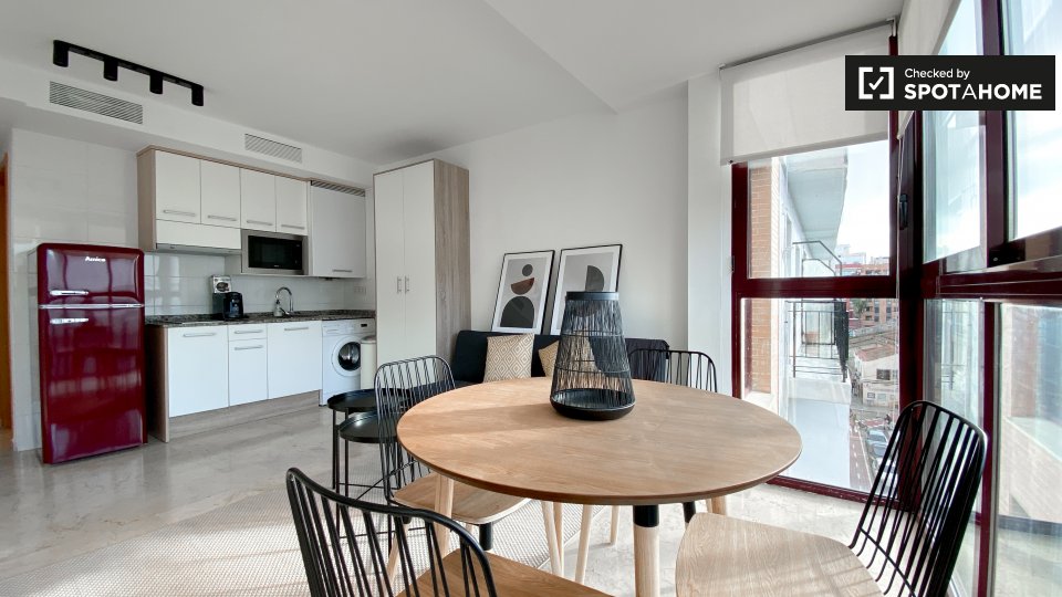 Spotahome presenta un grazioso appartamento con una camera da letto nel quartiere Patraix di Valencia. L'appartamento è completamente arredato e dotato di comfort moderni come una lavatrice privata e un sistema di aria condizionata centralizzato. La cucina è attrezzata per soddisfare le vostre esigenze culinarie e una TV è disponibile per il relax. Le coppie e i lavoratori sono benvenuti e la biancheria da letto è fornita e inclusa nell'affitto. Tutte le bollette, comprese elettricità, gas, acqua e Wi-Fi, sono incluse entro un limite globale. Questa proprietà è stata verificata da Spotahome, garantendo un elevato standard qualitativo.