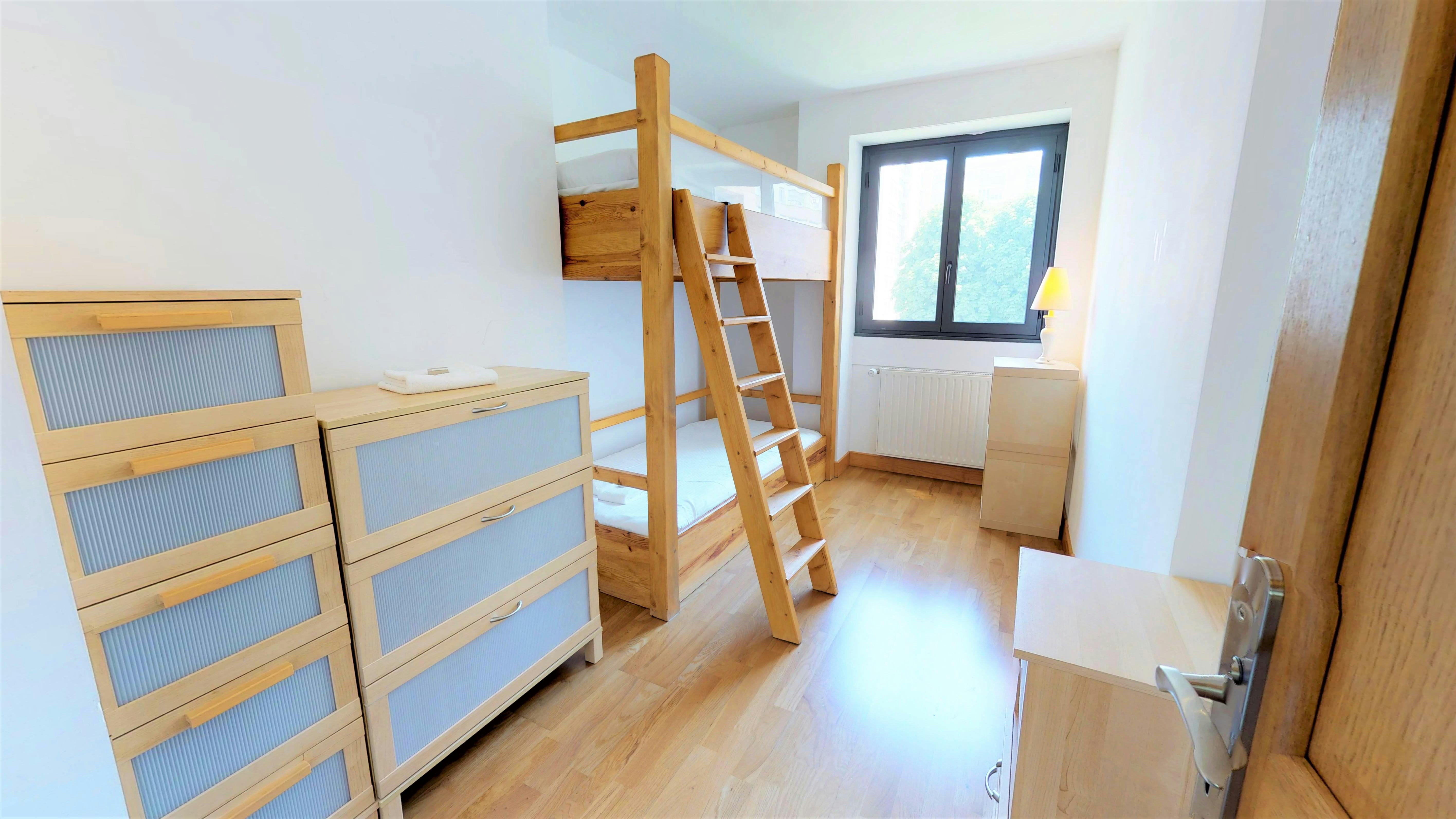 Welcome to my home! Centrally located to enjoy everything the city has to offer. This apartment can sleep up to 4 people comfortably. The flat has an open and cosy living room where you can relax after a long day exploring the city. It has multiple windows so guests can enjoy the sunlight and the outside view. The kitchen is fully equipped with essential cookware and cutleries that you will need to whip up a delicious meal. The two bedrooms contain a retractable bed for two people and a double one for two, as well, with hotel-quality linens. The bathroom has all the amenities you will need to freshen up, such as a shower, a toilet, and a sink. Fresh towels and free toiletries will also be supplied for your convenience. The flat is always professionally cleaned and sanitized for your health and safety. Enjoy your stay!