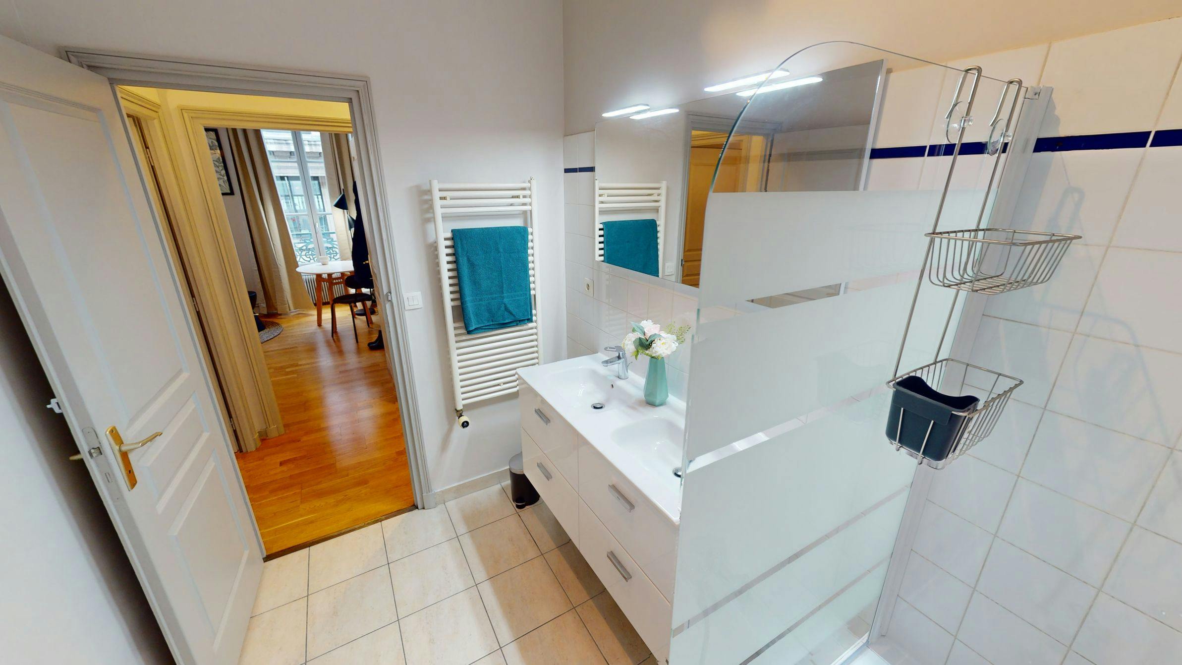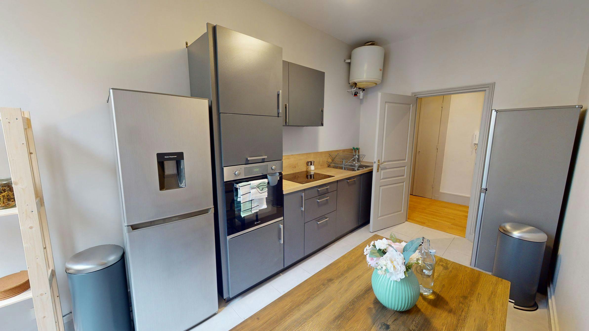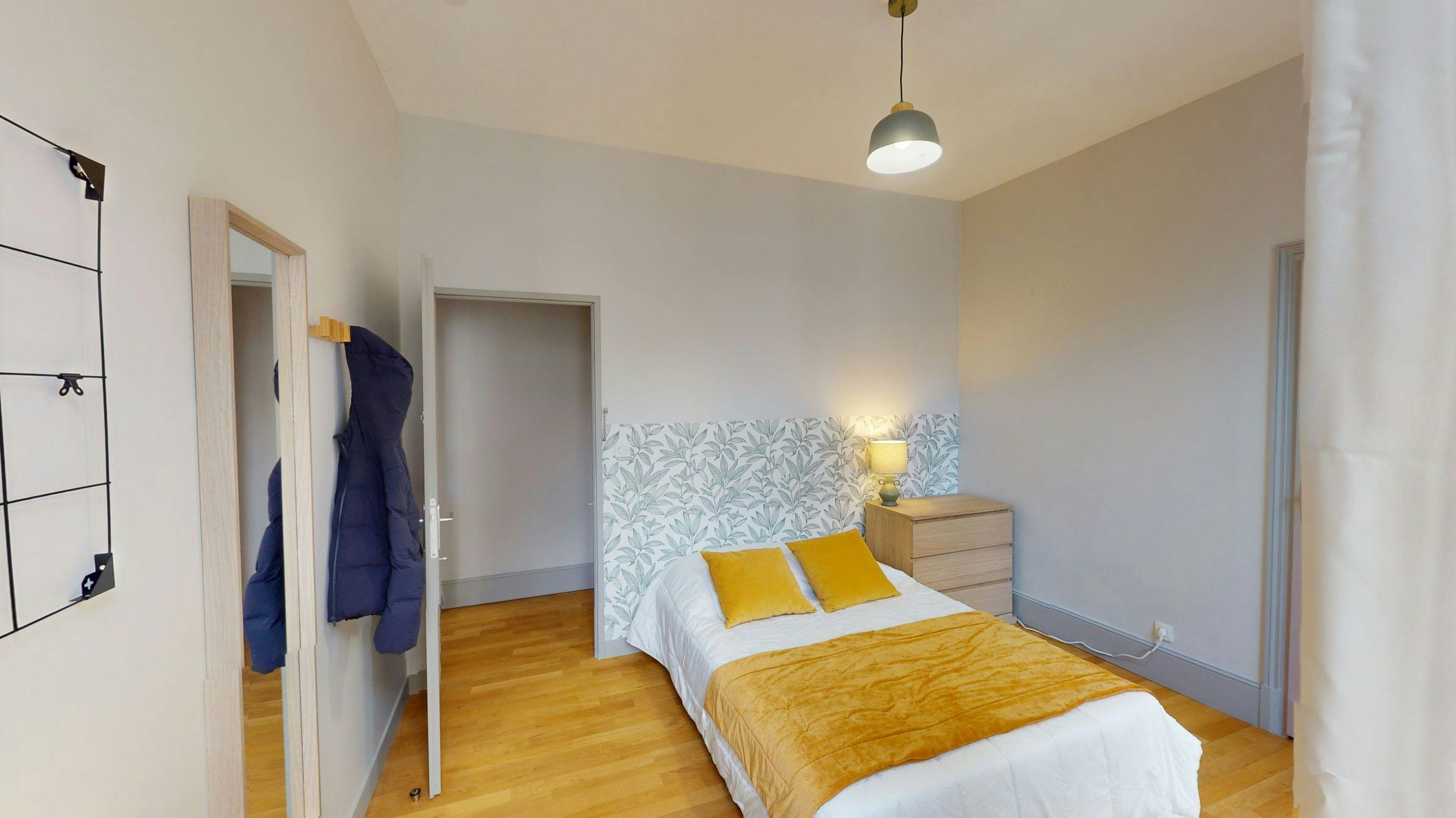 This lovely private bedroom in a fully equipped, furnished and all-inclusive flatshare in Lyon is a mix of comfort and design. It has got household furnishings, including a bed with pillows and duvet What is missing is your things to feel at home! The room can be locked if you need intimacy. The flatshare can be found in the Bellecour - Presqu'île neighborhood, in the heart of Lyon. Plenty of shops, public transports, restaurants are accessible close by. The apartment is on floor 5 with lift. It is entirely equipped and is composed of a large kitchen with refrigerator, microwave, pans, crockery, kitchen ustensils, kettle... The accommodation also contains an ironing board, a washing machine, a clothes rack, an iron. Additionally, you will find cleaning items in the accommodation: bagless hoover, dustpan and brush, broom, mop and bucket... Every Joivy furnished flatshare includes all expenses: housing insurance, water, electricity, unlimited wi-fi, condominium fees, household waste tax. Current tenants: 1: 25, Female, Worker 2: 20, Male, Student 3: 21, Male, Student Please be aware that HousingAnywhere is an online booking platform. Therefore exchanging contact details and offering viewings is not possible. If you would like to reserve this accommodation, send me a booking request or a message and please mention your age and occupation. I look forward to talking to you! CONTRACT Please, note that to all our listings we apply fortnightly contracts. This means that If you check-in during the first half of the month, you will be charged for the full month. If you check-in during the second half of the month, you will only be charged for the second half. The second half of the month starts on the 16th. If you check-out during the first half of the month, you will only pay until the 15th of that month. If you check-out during the second half of the month, you will be charged the full month.
