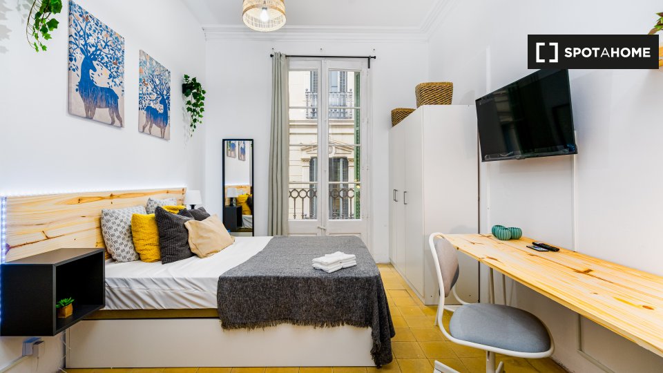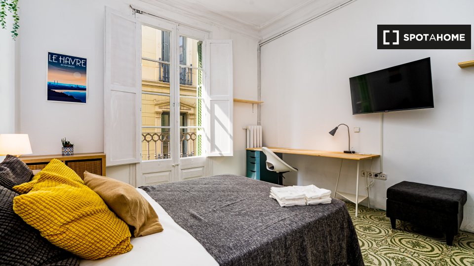 Cerchi un nuovo appartamento da condividere? Offriamo un'accogliente stanza in un appartamento condiviso con 4 camere da letto a Sant Antoni, Barcellona. La stanza e le aree comuni sono completamente arredate, con cucina attrezzata, lavatrice privata e balcone per godersi l'aria fresca! È consentito fumare nelle aree aperte designate e tutte le bollette (acqua, elettricità e Wi-Fi) sono incluse. Sono benvenuti solo professionisti, studenti e studenti Erasmus; famiglie e coppie non sono ammesse. Spotahome ha verificato personalmente questa proprietà per la tua tranquillità.