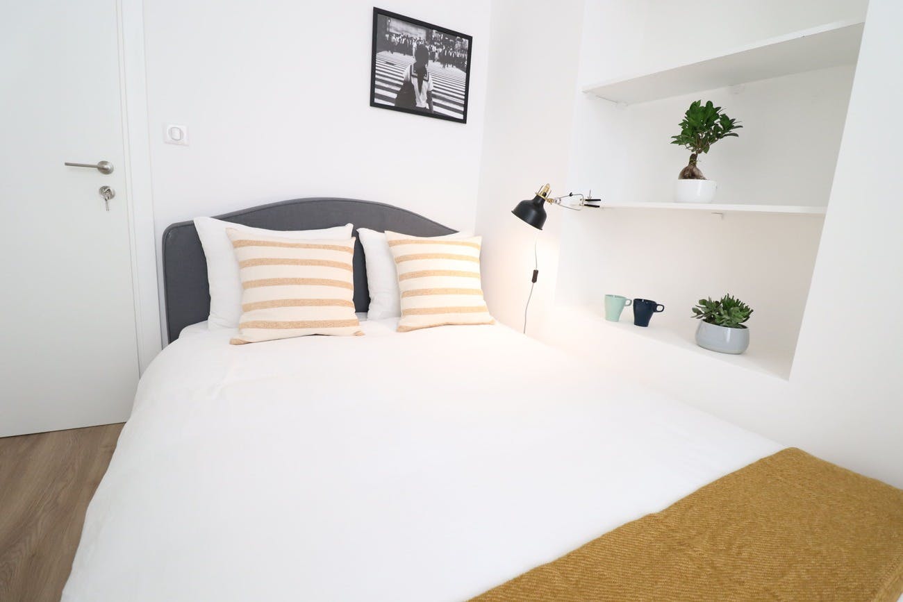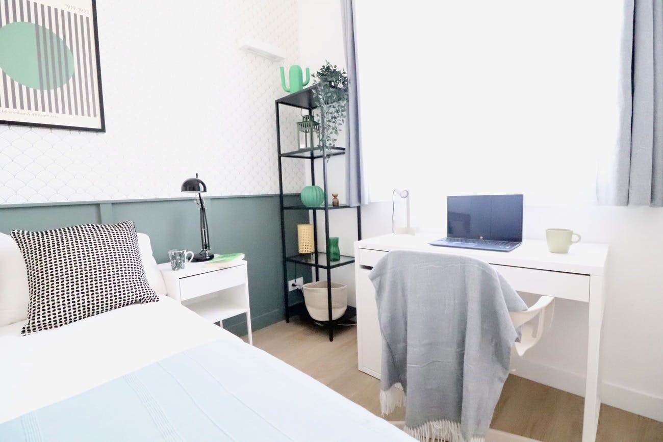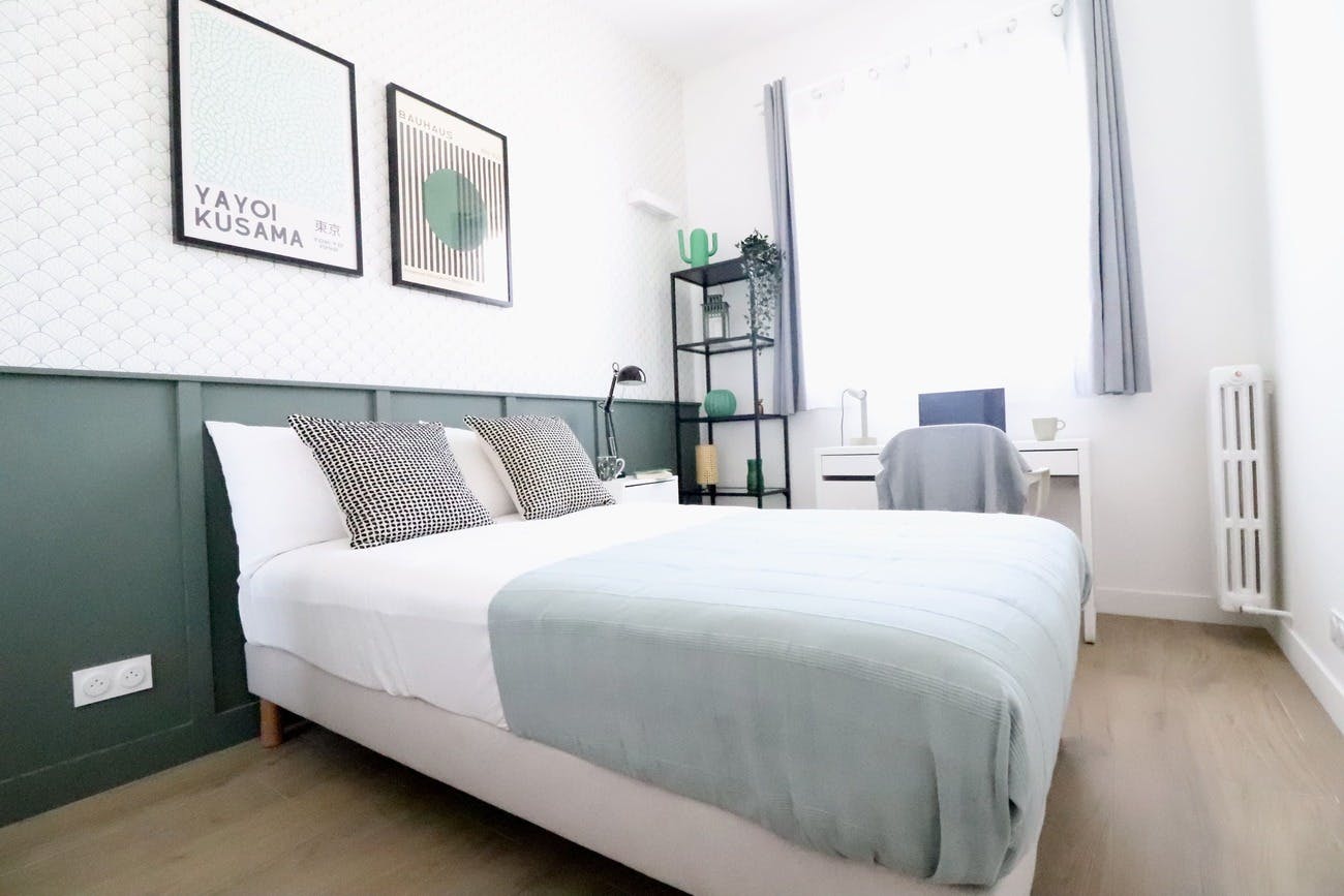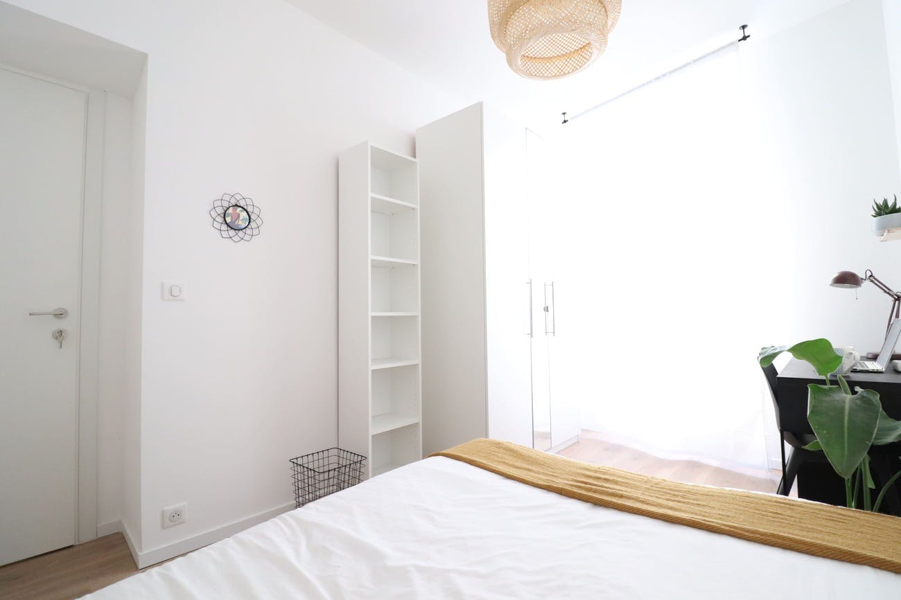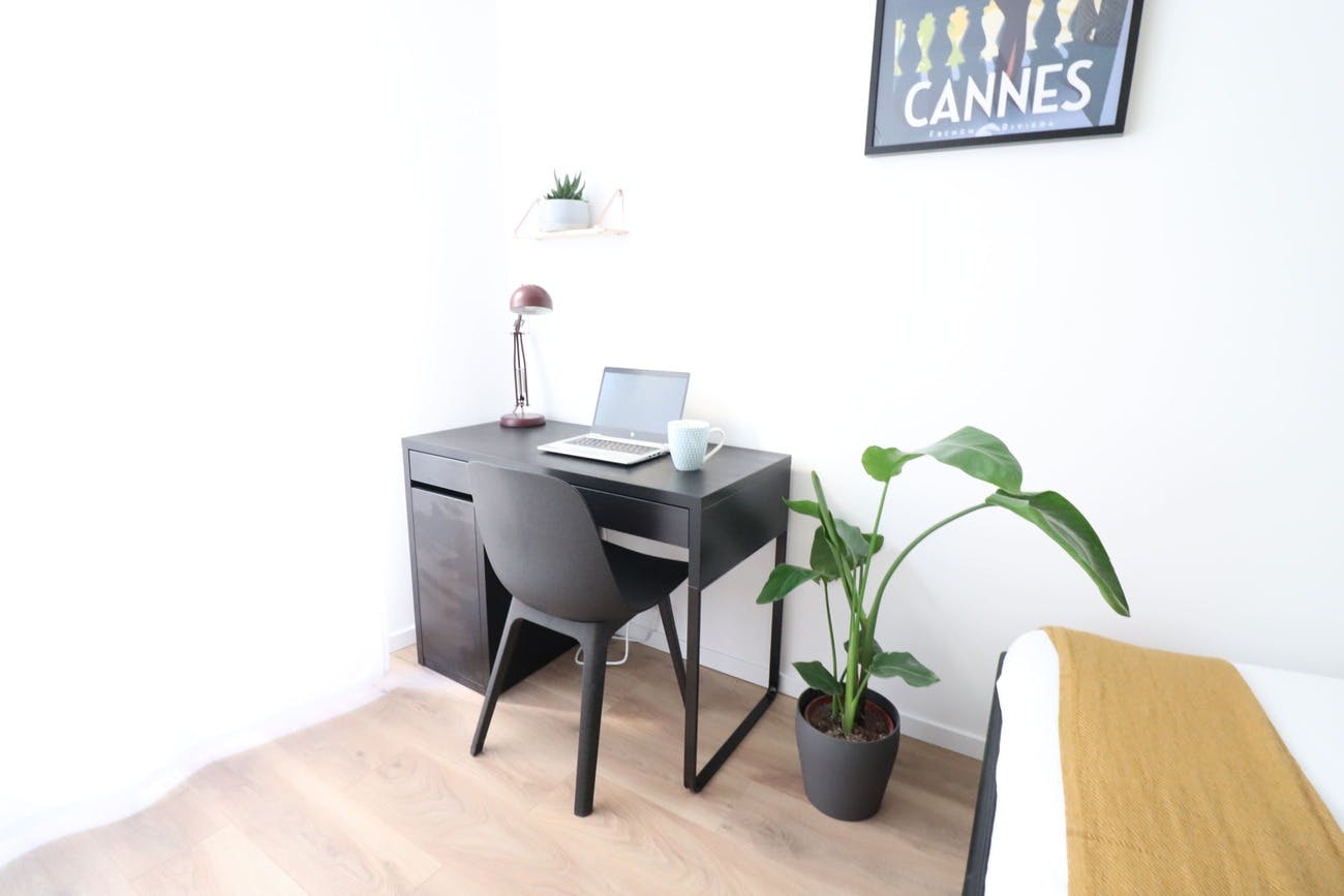 This modern 2nd-floor apartment, accessible by elevator, offers comfort and practicality in the heart of Nice. The open living room and kitchen provide a welcoming space for relaxation and socializing, designed in a contemporary style with warm tones. Each of the five bedrooms includes a double bed, desk, storage, and tasteful decor. Fully furnished with modern amenities—large TV, washer, dryer, and dishwasher—the apartment ensures an easy, comfortable lifestyle. Ideally located near shops, restaurants, and attractions, it’s just a 5-minute walk from the Alsace-Lorraine tram station for convenient city access. Rent includes building service charges, bi-monthly cleaning of communal areas, internet/cable TV, water, and an electricity provision (adjusted annually). A one-time application fee covers lease preparation, check-in/out, inventory, and tenant support. The apartment is APL-eligible; see the CAF website for details.