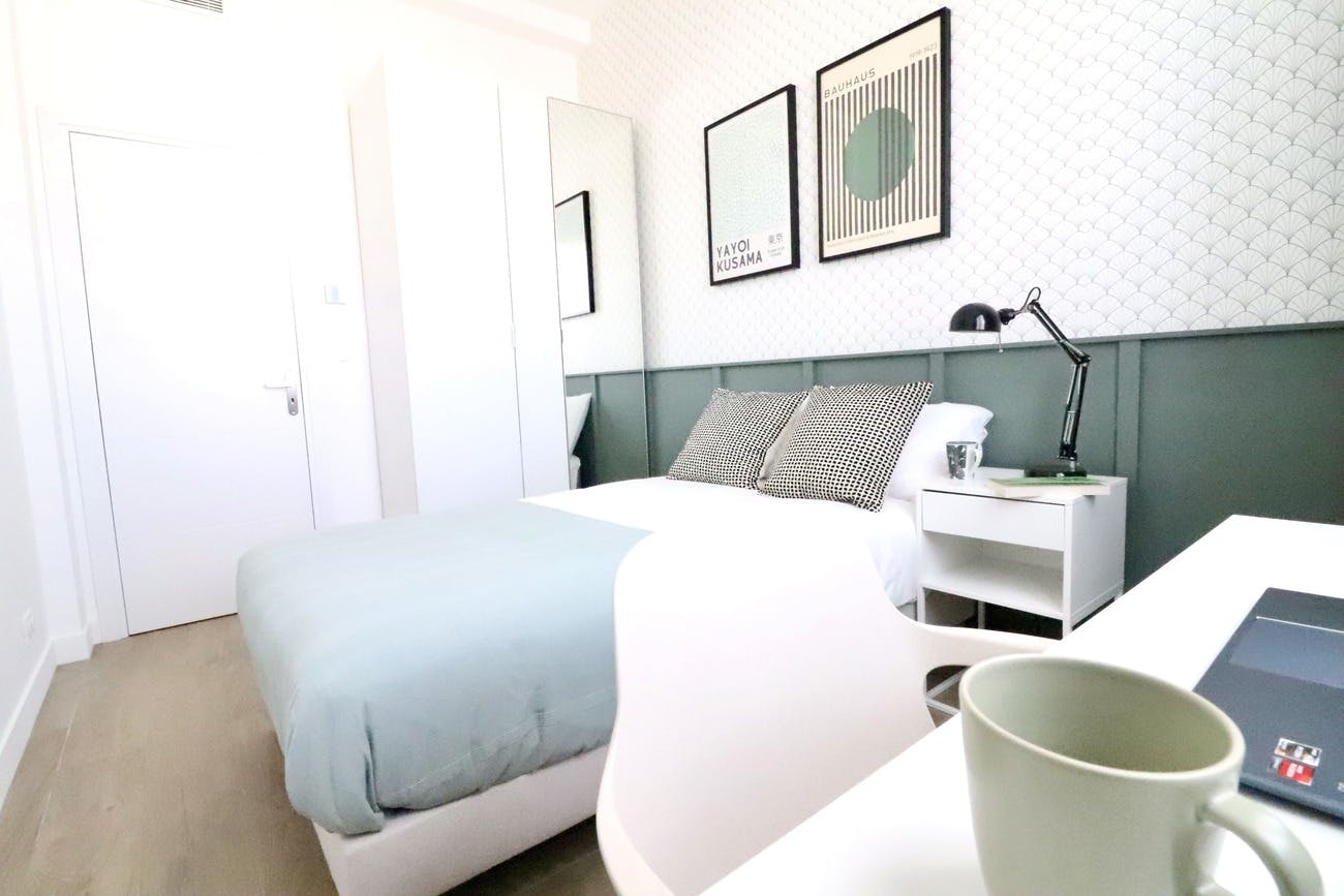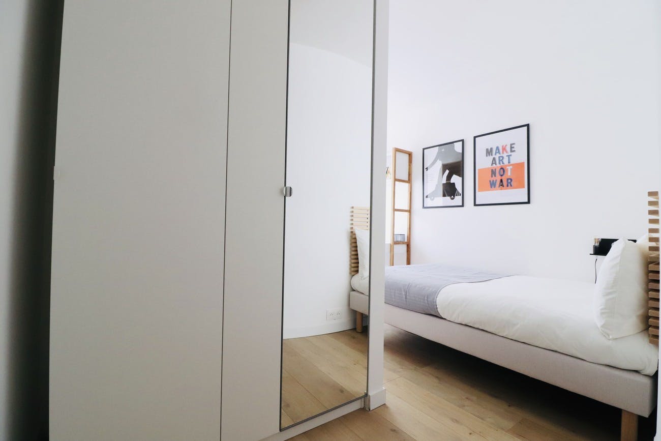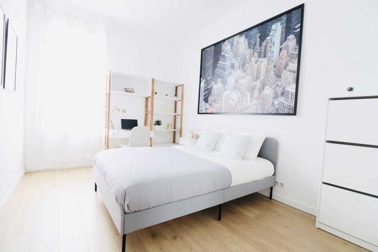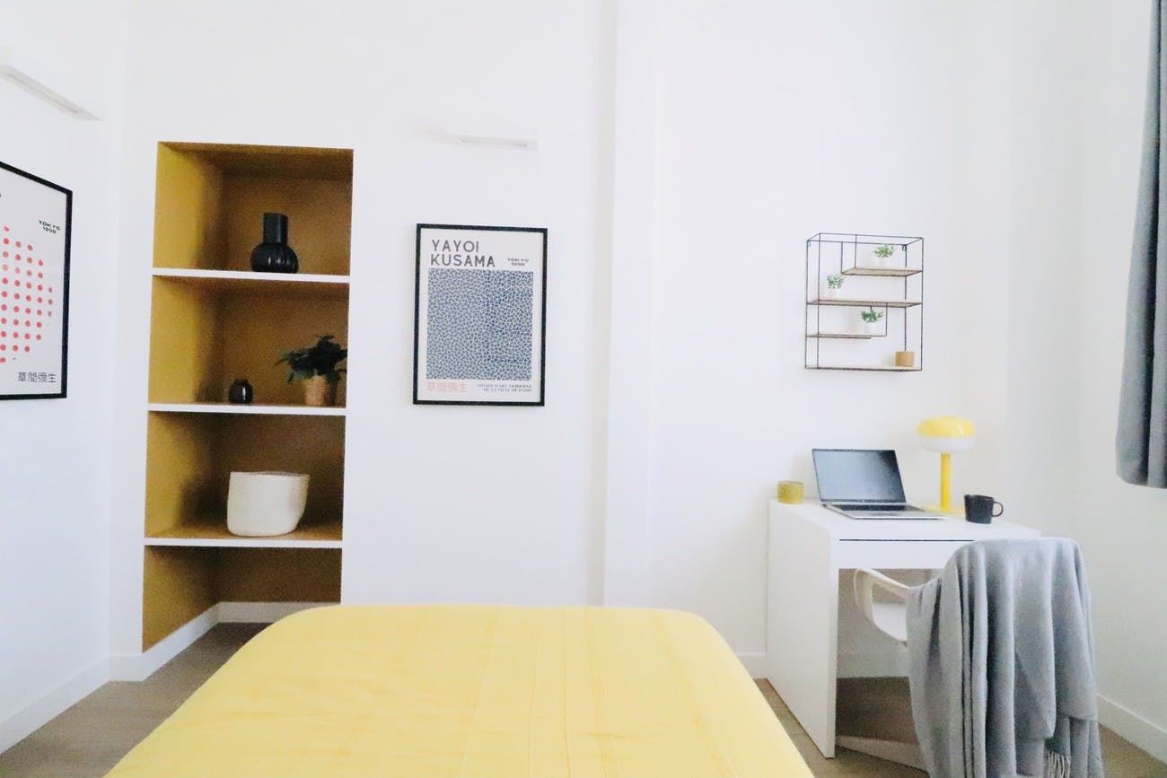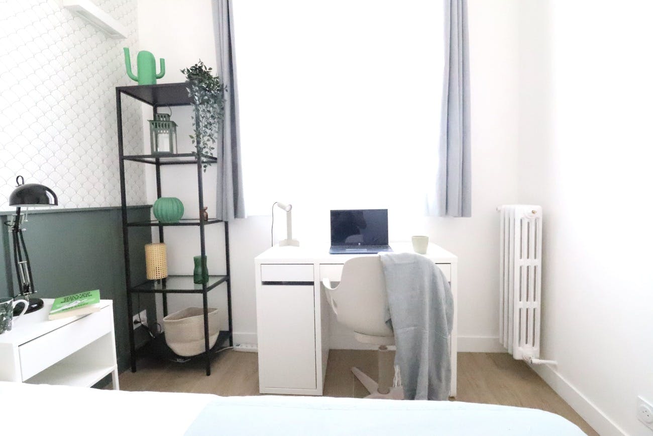 This modern 2nd-floor apartment, accessible by elevator, offers comfort and practicality in the heart of Nice. The open living room and kitchen provide a welcoming space for relaxation and socializing, designed in a contemporary style with warm tones. Each of the five bedrooms includes a double bed, desk, storage, and tasteful decor. Fully furnished with modern amenities—large TV, washer, dryer, and dishwasher—the apartment ensures an easy, comfortable lifestyle. Ideally located near shops, restaurants, and attractions, it’s just a 5-minute walk from the Alsace-Lorraine tram station for convenient city access. Rent includes building service charges, bi-monthly cleaning of communal areas, internet/cable TV, water, and an electricity provision (adjusted annually). A one-time application fee covers lease preparation, check-in/out, inventory, and tenant support. The apartment is APL-eligible; see the CAF website for details.